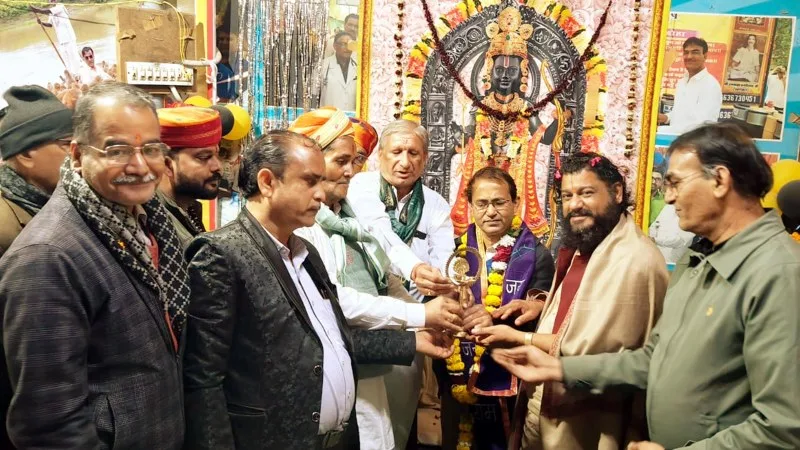 उदयपुर , 13 जुलाई। उदयपुर के रुंडेड़ा गाँव में निर्माणाधीन 84 फीट ऊँची और 11 मुखी हनुमान प्रतिमा के लिए तैयार की गई 21 फीट की अष्टधातु निर्मित पवित्र गदा आज बीकानेर पहुँची। पिछले 15 महीनों से पूरे भारत का भ्रमण कर रही यह गदा, मुरलीधर व्यास कॉलोनी स्थित शिव मंदिर में लाई गई, जहाँ ओम प्रकाश भाटी और मोहल्लेवासियों ने आरती और पुष्प वर्षा कर इसका भव्य स्वागत किया। सक्सेस पॉइंट कोचिंग इंस्टीट्यूट के डायरेक्टर मनीष कुमार भाटी ने इस अवसर पर कहा कि ऐसे आयोजनों से बच्चों में धार्मिक आस्था और सनातन संस्कृति का विकास होगा।
