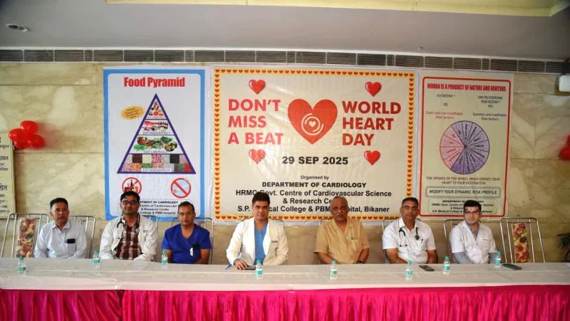 बीकानेर, 29 सितंबर। विश्व हृदय दिवस के अवसर पर पीबीएम अस्पताल के कार्डियोलॉजी विभाग में एक महत्वपूर्ण जागरूकता कार्यक्रम आयोजित किया गया। इस वर्ष की थीम “डोन्ट मिस ए बीट” के तहत लोगों को हृदय स्वास्थ्य के प्रति जागरूक करने पर विशेष जोर दिया गया।
