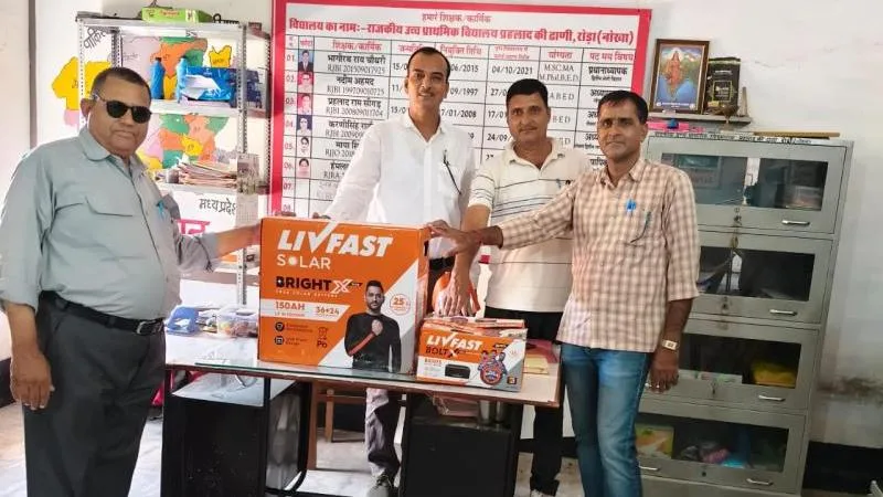 प्रधानाध्यापक की प्रेरणादायी पहल से विद्यालय को इन्वर्टर भेंट किया