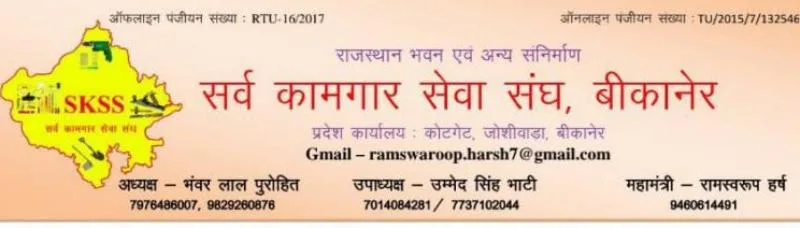 बीकानेर, 10 अक्टूबर। सर्व कामगार सेवा संघ, राजस्थान ने प्रदेश मंत्री अनिल नायक को तत्काल प्रभाव से उनके पद से हटा दिया है। यह कार्रवाई संघ के प्रदेश संरक्षक घनश्याम प्रजापत की अनुशंषा पर की गई है। इसके साथ ही, अनिल नायक द्वारा की गई किसी भी प्रकार की सिफारिश को तुरंत प्रभाव से निरस्त माना जाएगा।
