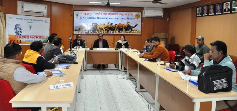 बीकानेर, 31 दिसंबर। भाकृअनुप-राष्ट्रीय उष्ट्र अनुसंधान केन्द्र (NRCC), बीकानेर में भारत सरकार के निर्देशानुसार 16 से 31 दिसम्बर तक आयोजित किए गए ‘स्वच्छता पखवाड़ा’ का बुधवार को औपचारिक समापन हुआ। इस अभियान के संदेश को जन-जन तक पहुँचाने के उद्देश्य से संस्थान परिसर में एक प्रेस कॉन्फ्रेंस का आयोजन किया गया, जिसमें स्वच्छता के महत्व के साथ-साथ ऊंटों के संरक्षण और अनुसंधान से जुड़ी प्रमुख जानकारियाँ साझा की गईं।