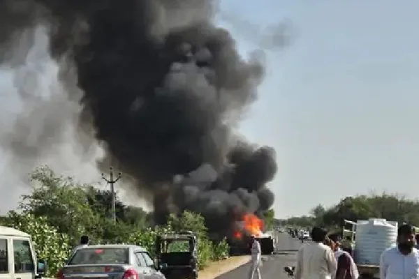 ट्रक से टकराई कार, जिंदा जला ड्राइवर, हादसे में सरकारी टीचर की भी मौत; चार घायल