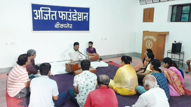 बीकानेर, 9 अक्टूबर । अजित फाउण्डेशन द्वारा आयोजित तीन दिवसीय कबीर सत्संग कार्यशाला के दौरान, युवा संगीतकार संजय झुंझ ने कबीर की प्रसिद्ध निर्गुण वाणी “मोको कहां ढूंढे रे बंदे….” सुनाकर सभी श्रोताओं का मन मोह लिया।