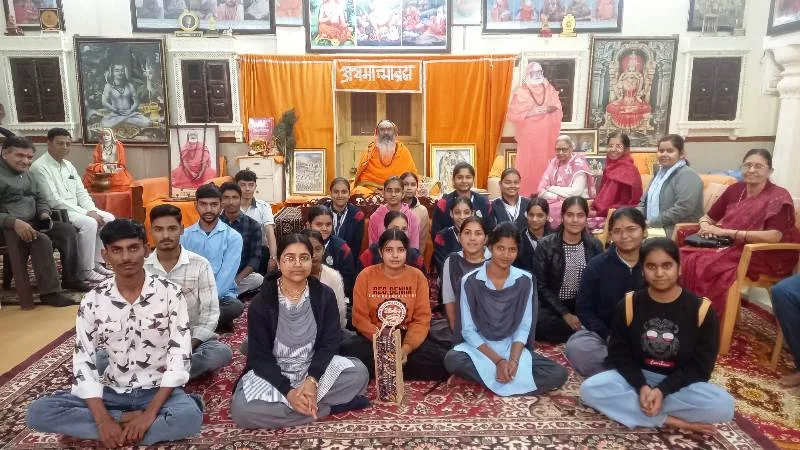 मंदिर अधिष्ठाता स्वामी श्रीविमर्शानन्दगिरि जी महाराज ने विद्यार्थियों को आशीर्वाद देते हुए गीता के महत्व पर प्रकाश डाला। उन्होंने कहा कि मानवता का अभ्युदय और इसी जन्म में भगवान की प्राप्ति के लिए भगवान श्रीकृष्ण ने अर्जुन से जो संवाद किया, उसे ब्रह्मऋषि वेदव्यास जी ने अपनी मेधा शक्ति से श्लोकबद्ध कर दिया। स्वामी जी ने विद्यार्थियों को विशेष रूप से संबोधित करते हुए कहा कि “विद्यार्थी जीवन में गीता का महत्व अति-महत्वपूर्ण हो जाता है, क्योंकि यह संस्कार, संकल्प, अनुशासन, इच्छा शक्ति, ज्ञान शक्ति के साथ-साथ मन को एकाग्र करने हेतु अति महत्वपूर्ण है।”